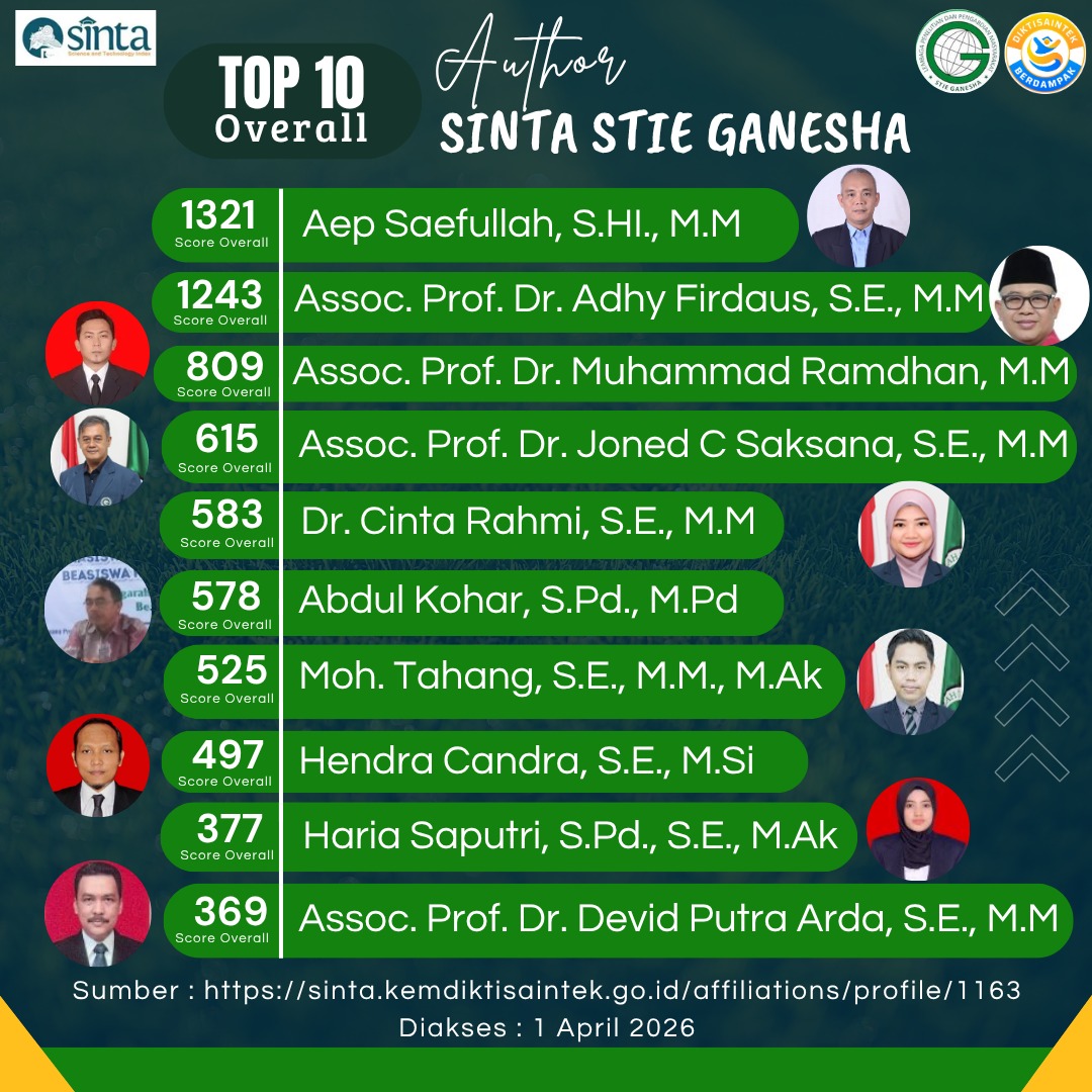 LPPM STIE Ganesha Top 10 author sinta stie ganesha, bukti peningkatan kinerja akademik... Sitti Aliyah Azahra 02 April 2026