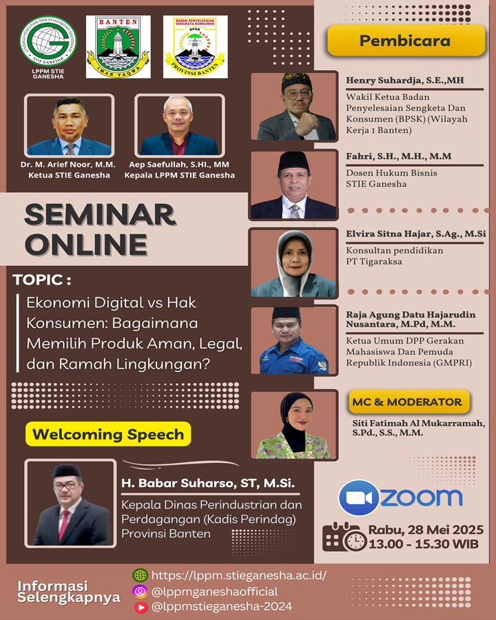 LPPM STIE Ganesha Seminar stie ganesha 2025: menjawab tantangan perlindungan konsumen di era... Sitti Aliyah Azahra 11 May 2025