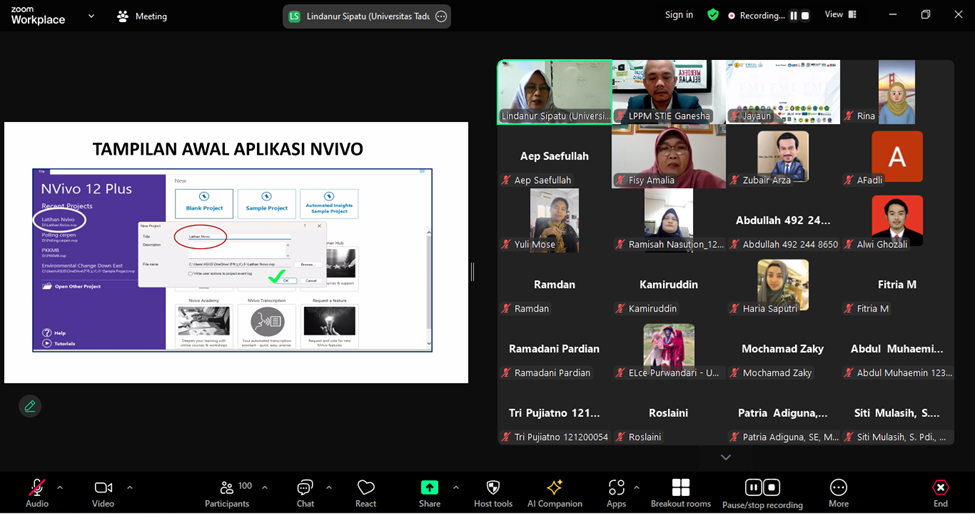LPPM STIE Ganesha pelatihan online - menyusun desain penelitian & olah data hasil penelitian kualitatif-berjalan... Sitti Aliyah Azahra 19 November 2024