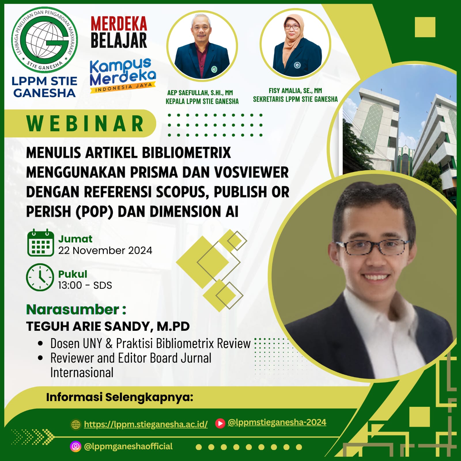 LPPM STIE Ganesha Webinar menulis artikel bibliometrik dengan prisma dan vosviewer: tingkatkan kualitas publikasi... Sitti Aliyah Azahra 15 November 2024